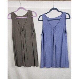 Eileen Fisher Tank Tops L Lot of 2 Gray Purple 100% Linen Slub Pleat Casual Flow