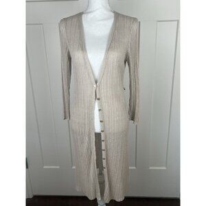 Eileen Fisher Taupe Beige Organic Linen Duster Cardigan Sweater Women's Size PS