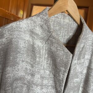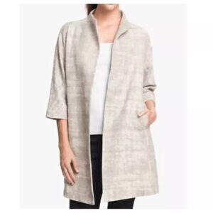 Eileen Fisher Taupe Silver Illusion Jacquard Open Front Long Coat Jacket XL
