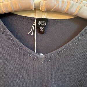 Eileen Fisher Teal V-Neck Sweater – Italian Yarn – Beaded Neckline – Size Medium