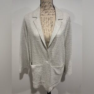 Eileen Fisher Tencel Jacquard Knit Blazer Jacket Stone Grey Size Small