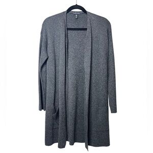 Eileen Fisher Tencel Stretch Longline Open Cardigan Black Marled Cardigan XS
