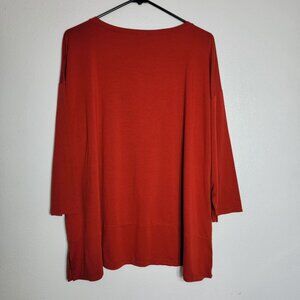 Eileen Fisher Tencel Top Size Large Red 3/4 Sleeve Side Slits Pullover Stretch
