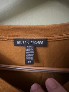 Eileen Fisher Womens Size Small Petite Mustard Tunic Short Sleeve Side Slit Minimal Stretch
