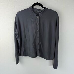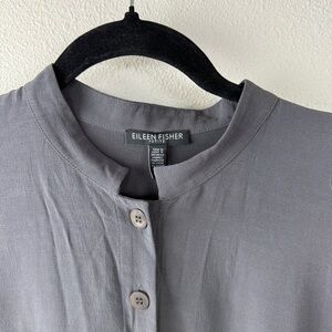 Eileen Fisher Tencel Viscose Crepe Mandarin Collar Button Front Shirt Petite Sm