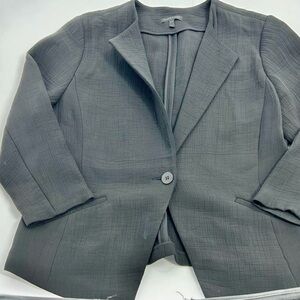 Eileen Fisher Textured Black Longline One Button Silk Blend Jacket Blazer L
