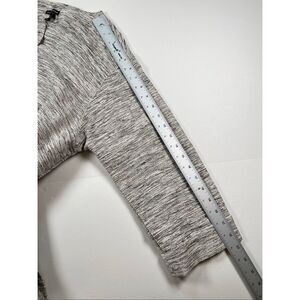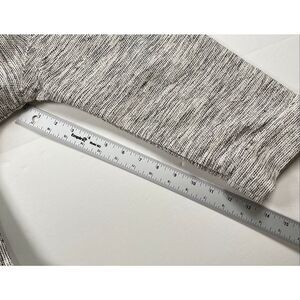 The heathered gray-white marled finish adds subtle dimension, making it ideal for both casual and polished outfits. Measurements are approximately: length 32”, chest 21.5”, sleeve 18”.
