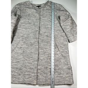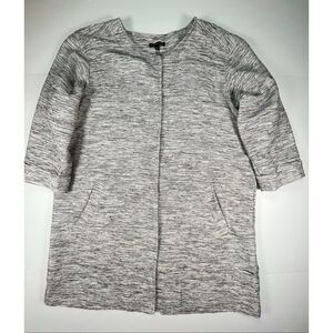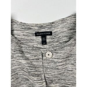 Eileen Fisher L/G Textured Knit Button Front Coat Cardigan Jacket Gray White