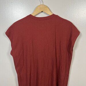 Eileen Fisher Textured Stretch Rib Crew Neck Dress Size Medium Boxy Terracotta
