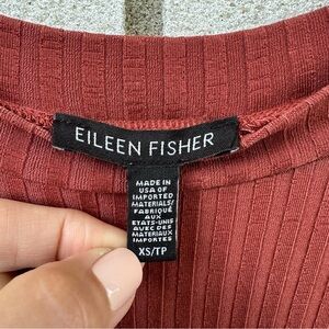 Eileen Fisher Textured Stretch Rib Round Neck Dress Boxy Terracotta Knee Length
