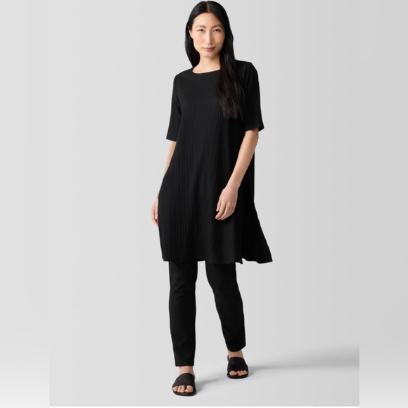 Eileen Fisher Textured Stretch Rib round Neck Top petite small NWT