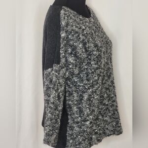 If you love Eileen, you're going to love this marled gray super soft sweater from the Fisher Project. This sweater is a boucle knit made from a wool and mohair blend, featuring a crewneck and 3/4 sleeves.