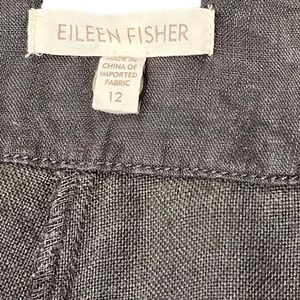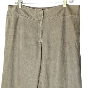 Eileen Fisher Thick Waisteband Gray Linen Wide Leg High Rise Pants 12