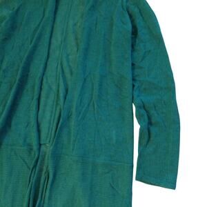 Eileen Fisher Thin Knit Long Cardigan Sweater Size M Merino Wool? Teal Green