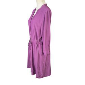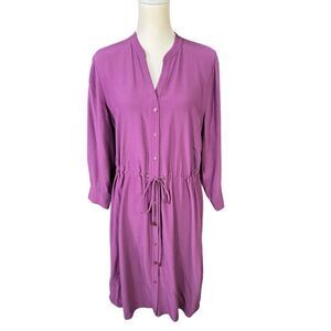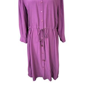Eileen Fisher Tie Waist Button-Down Dress in Currant Purple Size Medium
