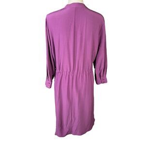 Crafted with a meticulous attention to detail, this Eileen Fisher dress offers both comfort and style. The waist tie provides a customized fit, making it suitable for various body shapes. Its button-down design allows for versatile styling options, while the vibrant purple color adds a pop of sophistication to your wardrobe.