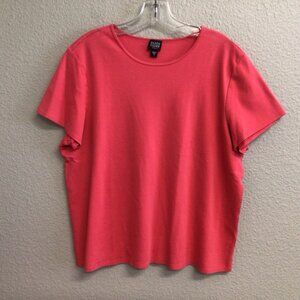 Eileen Fisher Top Cotton Jersey Short Sleeve Coral Plus Size 1X TShirt Shirt