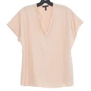 Eileen Fisher Top Mandarin Collar Minimalist Quiet Luxury Capsule Boho Dune XS