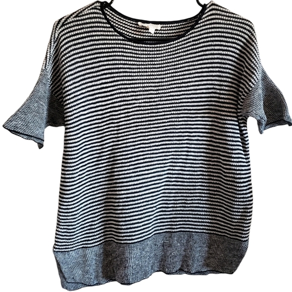 Eileen Fisher Top S Womens Black Striped Organic Linen Lagenlook Light Sweater