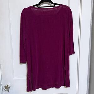 Eileen Fisher Top Women Size XS Burgundy 100% Organic Linen Lagenlook Tunic