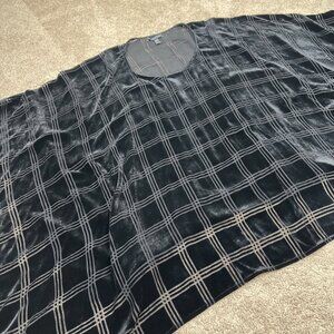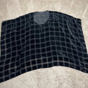 Eileen Fisher Top Womens One Size Black Velvet Plaid Burnout Poncho Shawl Drape