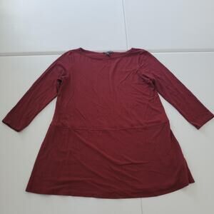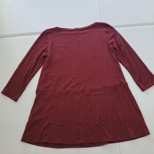 Eileen Fisher Top Womens Petite Small Burgundy 3/4 Sleeve Tunic Knit Made USA