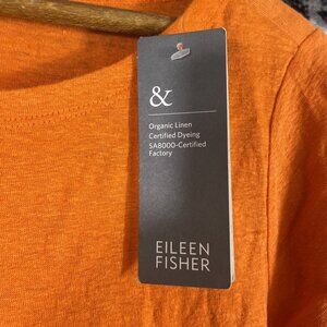 Eileen Fisher Top Womens Size Small Orange Organic Linen Short Sleeve Hippie