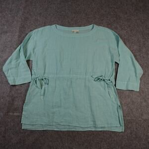 Eileen Fisher Top Womens Small Capri Handkerchief Linen Bateau Neck Beachy Blue