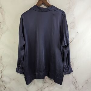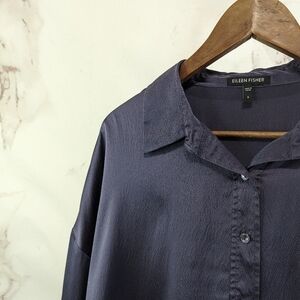 Eileen Fisher Top Womens Small Purple Silk Button Up Boxy Satin Long Sleeve