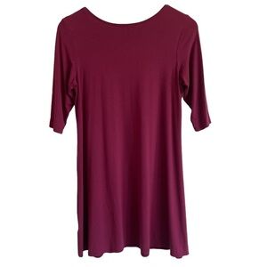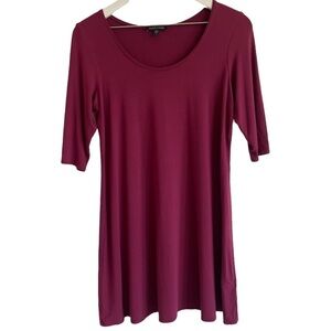 Comfy and classic burgundy Eileen Fisher trapeze style tunic top. Size Small. This could be styled as a tunic top or a dress, depending on your height! In excellent pre-owned condition; no visible flaws.