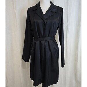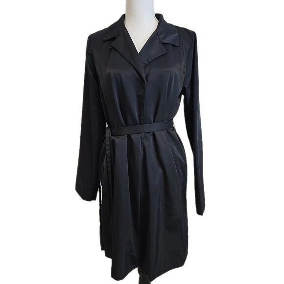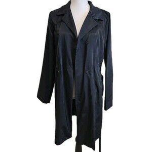 Eileen Fisher Trench Coat Windbreaker Raincoat Belted Pockets Black Women’s Sz S