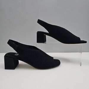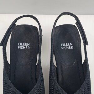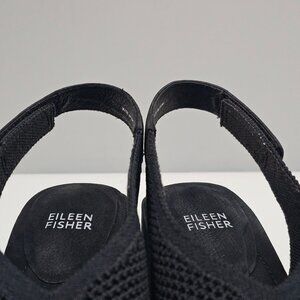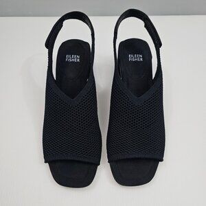Eileen Fisher Trudy Sandal Womens 9 Black Stretch Knit Block Heel Slingback