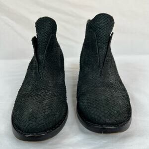 Eileen Fisher Tuck Siped Bootie Womens US 7 Black Snake Skin Textured Leather