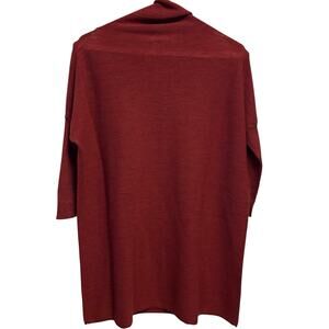 Eileen Fisher Tunic Sweater Rust/Burnt Orange Long Line Merino Wool Sweater with Side Vents, a Cowl Neck, and 3/4 Sleeves
