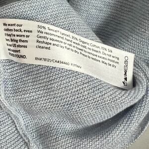 The Eileen Fisher sweater is crafted with a blend of luxurious materials including silk, Tencel, lyocell, and organic cotton, this blue pullover ensures both comfort and style. Designed in a classic solid pattern, it features a tight-knit fabric that provides a cozy feel, perfect for the cooler seasons of winter, fall, and spring. The sweater presents a sleek, collarless crew neck that complements its versatile long sleeves. Tailored for a regular fit in a size small, it's a piece that effortlessly combines casual sophistication with practicality. Carefully made in China, this knit garment requires hand washing to maintain its quality. Add a touch of effortless chic to your ensemble with this essential layering piece.