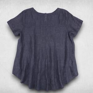 Eileen Fisher Tunic Top Women XL Gray/Black High Low Hem 100% Organic Linen Boho