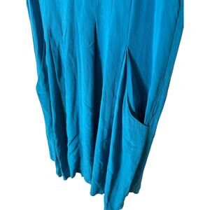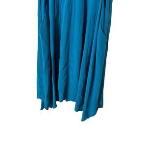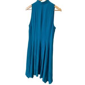 Eileen Fisher Turquoise 100% Silk Pleated V-Neck Dress Small
