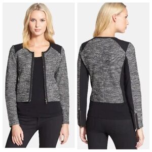 • Full zip jacket features a zipper detail on the sleeve cuffs