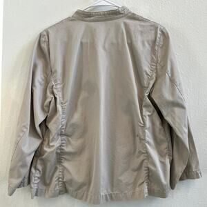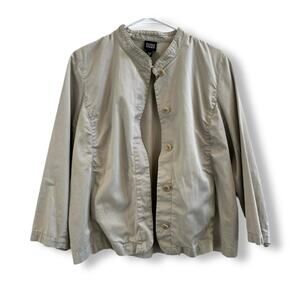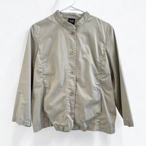 Eileen Fisher Utility Blazer Cotton Khaki Mock Neck Button Down Cropped Jacket M
