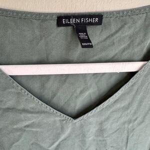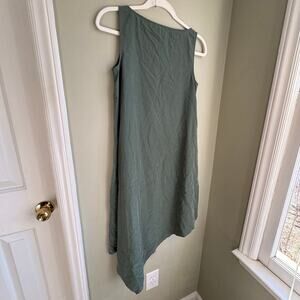 Eileen Fisher V Neck Asymmetrical Sandwashed Tencel Shift Dress Nori Green XXS