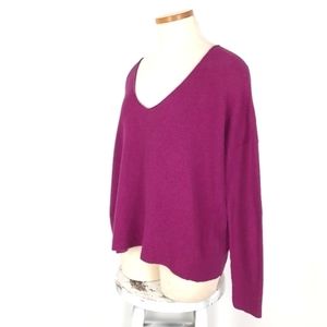 Eileen Fisher V Neck Sweater Top In Fuschia Size Medium