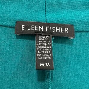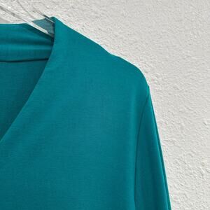 Eileen Fisher V Neck Tunic Top Women Medium Green 3/4 Sleeve Jersey Knit Modest