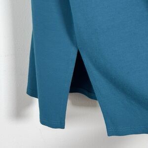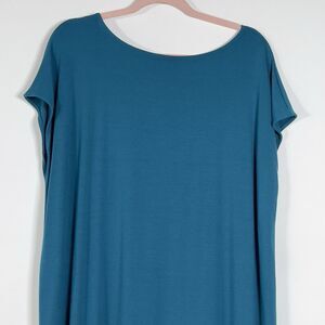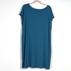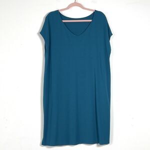 Eileen Fisher V-Back Shift Dress Women XL Teal Blue Cap Sleeves Jersey Stretch