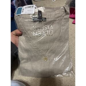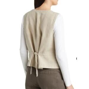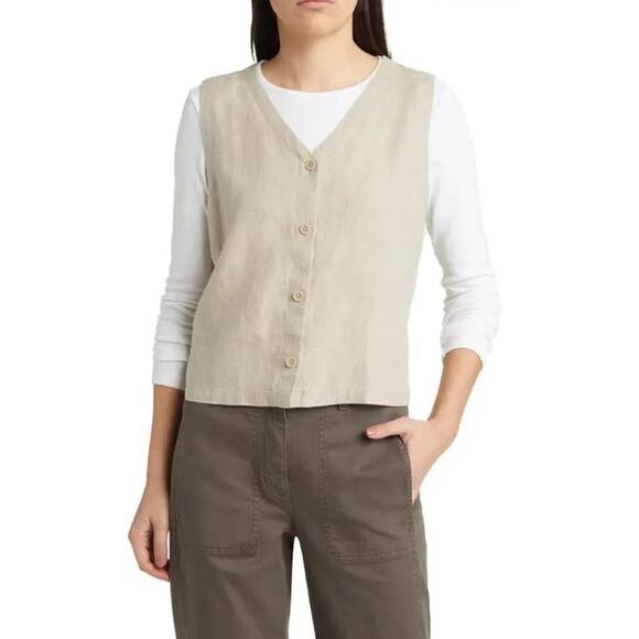Eileen Fisher V-Neck Button Down Organic Linen Vest Minimalist Modern Sz M NWT