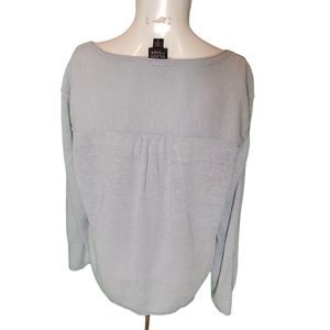 Eileen Fisher VTG Light Blue Italian Linen Silk Sweater V-neck Rolled Hem sz XL