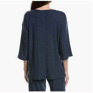 Eileen Fisher Variegated Rib Tunic Top Shirt Women's Size XS Navy Blue Ocean