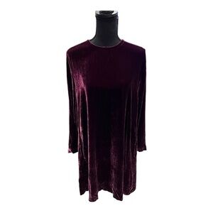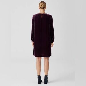Eileen Fisher Velvet Crew Neck Plum Dress Small