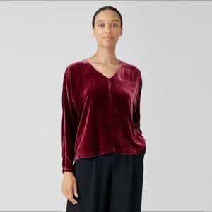 Eileen Fisher Velvet V-Neck Dolman Sleeve Top, Boxy Fit, Basic Length, Red, SZ M - RUNS LARGE