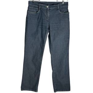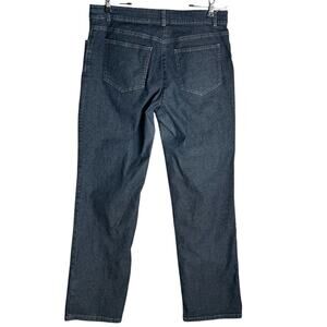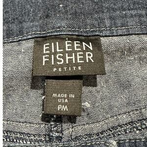 Eileen Fisher Vintage Sz M Petite Dark Wash Straight Wide Leg Jeans Stretchy USA