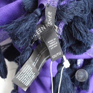 Eileen Fisher Violet Wrap Tassels Scarf Shawl Shimmer Wool Edges 80in NWT NOS OS
